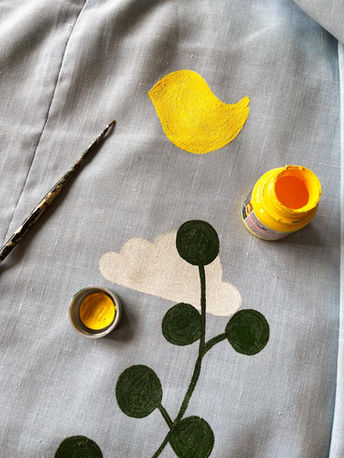 cor de fundo da tela ou apliques e detalhes como florais, folhas e outros adereços nas peças de moda. Pode optar por não participar do processo de criação e deixar tudo a critério da artista. A etapa de esboço, no entanto, é obrigatória.